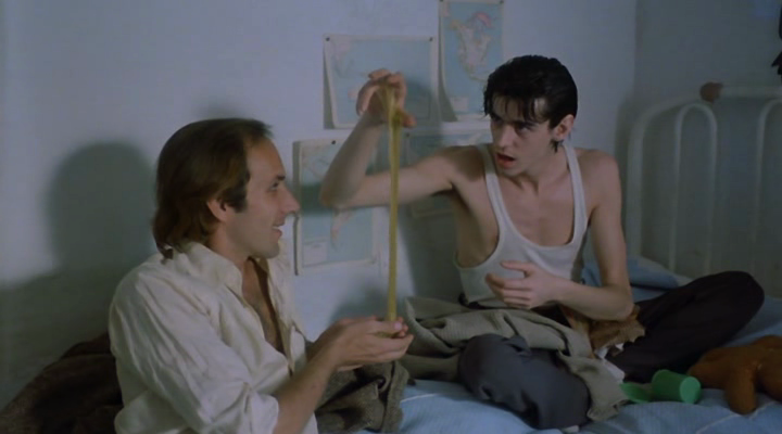 rapture starts off with a guy named, jose, a film maker and a heroin addict who seems pretty lost with his life. he gets a package from a guy named pedro that contains key, a reel of super8 film, and an audio cassette. jose sits down and listens to the tape and it retells the story when pedro and jose first met. pedro is obsessed with film. it keeps him from sleeping, eating, and having sex for a long time. the only thing that keeps him going is heroin. when he watches his own films, he has "raptures" that makes him cry and freak out. him and jose sort of become bffs in a way. most of the film it shows pedros life as he realizes when he sleeps, the camera films him. when he developes the film, it shows his raptures. it also makes people disappear. i know its pretty fucking weird. i could go on explaining the rest of the film but i would bore myself and others.